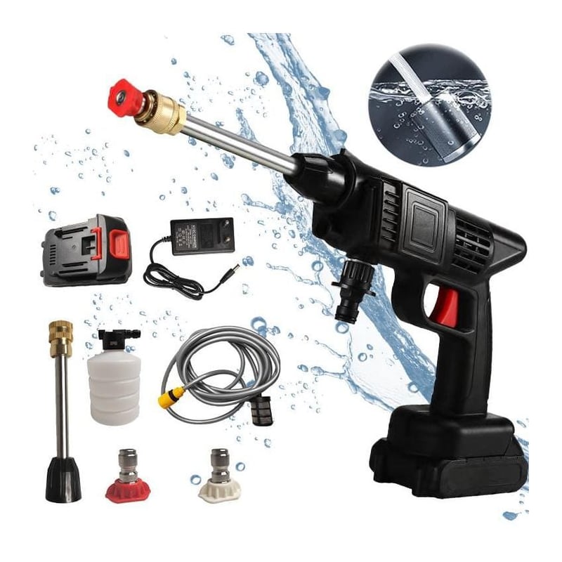 Esta ferramenta versátil inclui boquilhas de 0° e 40°, junto com uma regadera de espuma para limpar o fundo de automóveis e superfícies. Seu design inalámbrico, leve e compacto permite levá-lo para qualquer lugar e extrair água de forma rápida e fácil. Além disso, a entrega é feita com um fundo de armazenamento sólido, que facilita a manutenção de tudo organizado e transportado.
